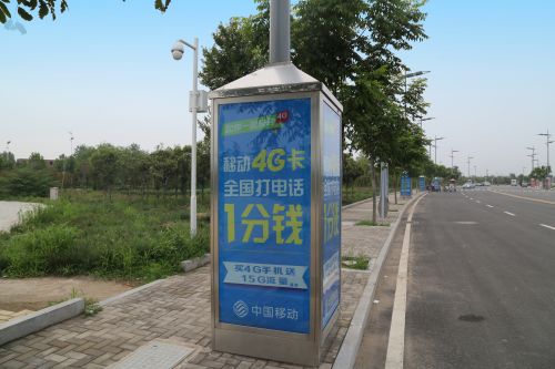 路灯杆落地灯箱高铁站站前广场周边,数量为60个,灯箱采用全钢结构和高清晰钢化玻璃,造型美观,线条优美。